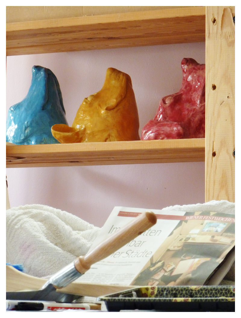 neben der Malerei entstehen heute auch Collagen, Skulpturen, Fotografien und Installationen. nach einigen Jahren in Hamburg, bin ich heute glücklich in Wien.