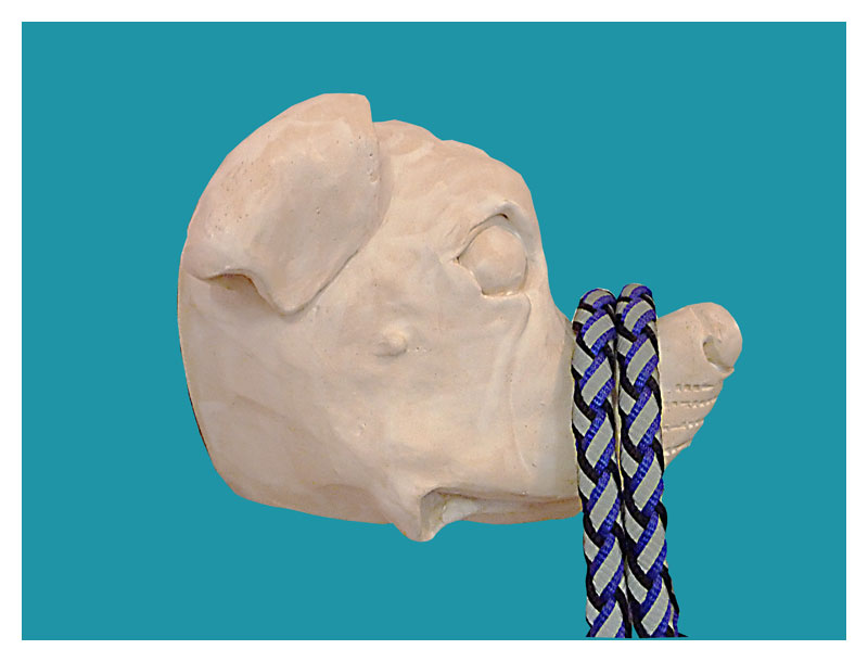 er wird ganz einfach wie ein Bild mit einem Haken an die Wand gehängt. die Hundeleine wird darüber gelegt und ist stets griffbereit wenn es Gassi geht. man muss aber keinen Hund haben! auch als Skulptur an der Wand, ist Spike aus der Serie „Alles Liebe“ ein echter Blickfang.